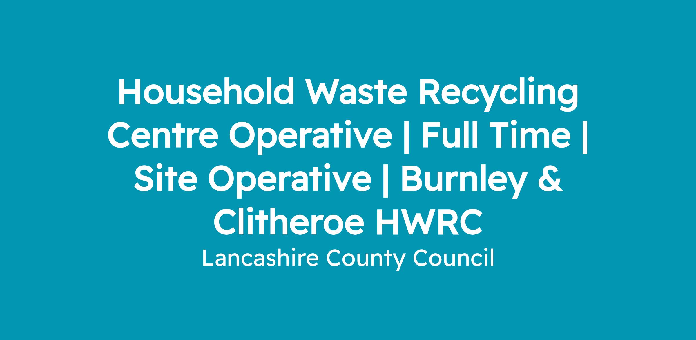 Salary £25,185-£25,989 per annum | Full Time, Permanent | 40 Hours per Week | Site Operative | Burnley & Clitheroe HWRC